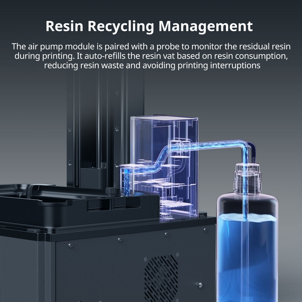 Remplissage Automatique : Ne tombez jamais à court de résine en pleine impression grâce au module de réalimentation automatique.