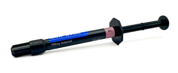 Tetric N-Flow, une résine fluide nanohybride, photopolymérisable, radio-opaque, présentée en seringue de 2 grammes.
